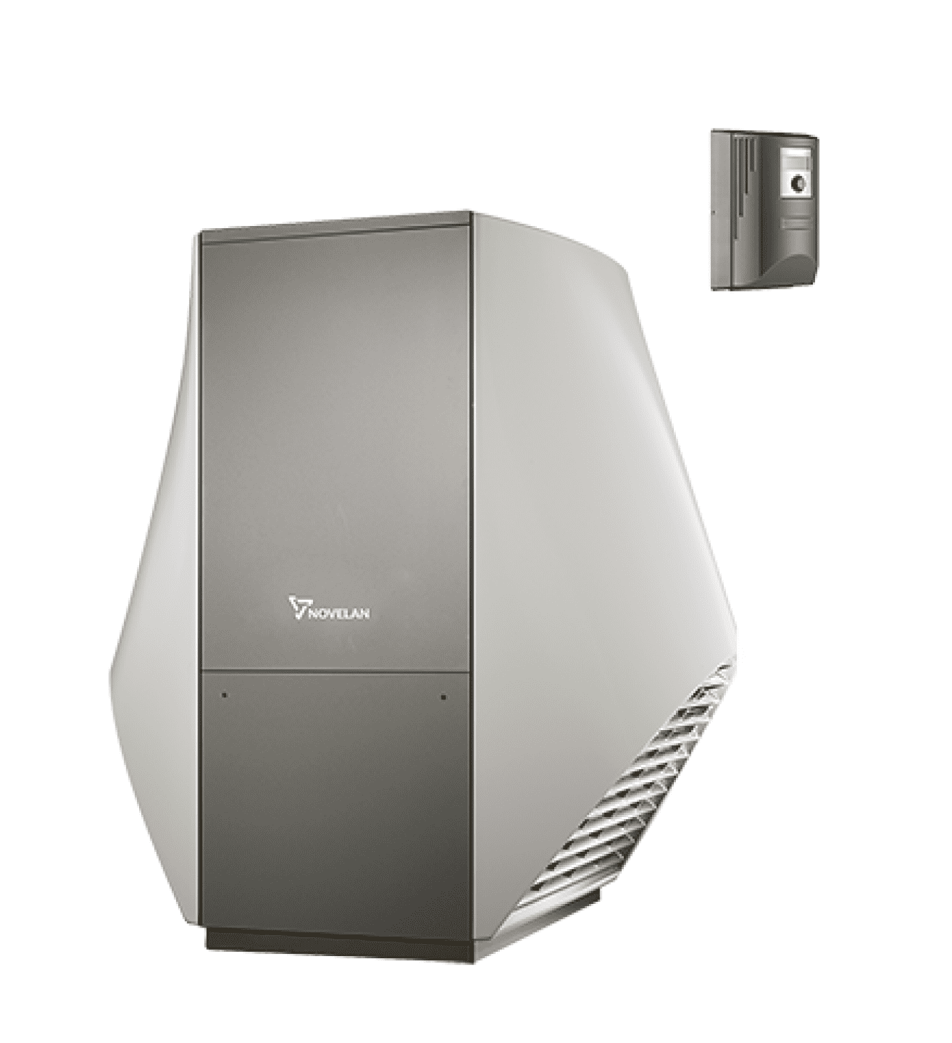 NOVELAN Wärmepumpe LA 25.2-WPR-Net Artikel-Nr.: 103546WPR33 Energieeffizienzklasse Raumheizgeräte bei 35 C: A++ Energieeffizienzklasse Raumheizgeräte bei 55 C: A+ Energieeffizienzklasse Verbund Raumheizgeräte bei 55 C: A+ Gerätebeschreibung LA 25.2: Entsprechend den gültigen Normen und Sicherheitsvorschriften ausgeführte, anschlussfertige Luft/Wasser-Wärmepumpe für die Aussenaufstellung mit flouriertem Treibhausgas. Das Gerät besteht aus einem feuerverzinkten, zusätzlich KTL beschichteten und verwindungsfreien Rahmen, die pulverbeschichtete Aluminiumfassade ist schallgedämmt und mit Schnellverschlüssen versehen. Die Aussenhutzen sind aus UV-beständigem Kunststoff gefertigt. Kältekreis mit schwingungs- und schallgedämpftem Scroll-Verdichter und wärmeisoliertem Edelstahlplattenwärmetauscher als Kondensator. Der Verdampfer besteht aus Kupferrohr mit aufgepressten Aluminiumlamellen und wird mittels Axialventilator beaufschlagt. Die Abtauung erfolgt durch Kreislaufumkehr. Hoch- und Niederdrucküberwachung des Kältekreises, Schaltkasten mit Steuer- und Überwachungsorganen für die Wärmepumpe und kodierten Steckverbindungen zum Anschluss der elektrischen Steuer- und Fühlerleitung. Sensoren zur Temperaturüberwachung des Kältekreises und der Heizwasserseite. Wärmebedarfsabhängige Verdichteransteuerung. Integriertes Elektroheizelement zur Unterstützung der Heizung und Trinkwarmwasserbereitung im monoenergetischen Betrieb. Technische Daten: Heizleistung/COP nach EN14511 bei A2/W35: 24,0 kW / 3,6 13,2 kW / 3,8 Einsatzgrenzen Heizkreis: 20 bis 50*) C Wärmequelle: -20 bis 35 C Luftvolumenstrom bei maximaler externer Pressung: 7800 m^3/h Druckverlust WP bei nom. Heizwasser- Volumenstrom: 0,12 bar Nominaler Heizwasser-Volumenstrom: 5000 l/h Maße (B x T x H): 1779 x 1258 x 1817 mm Gewicht gesamt: 540 kg Kältemittel / Füllgewicht: R407C / 9,8 kg Spannungscode: 3-N/PE/400V/50Hz Anlaufstrom direkt / mit Sanftanlasser: 74 / 30 Elektroheizelement 3 / 2 / 1 phasig: 9 / 6 / 3 kW Funktionsnotwendiges Zubehör: Fühler- und Steuerleitung Gerätebeschreibung WPR-Net: Witterungsgeführter Heizungs- und Wärmepumpenregler mit Vollgrafikdisplay und Menüführung, laufzeitoptimierte und wärmebedarfsabhängige Verdichteransteuerung, alle Betriebsarten einzeln programmierbar, automatische Heizgrenzfunktion, Estrichausheizprogramm, Pumpenoptimierungsprogramm, Ansteuerung von mehreren Wärmeerzeugern, Ansteuerung eines Mischkreises (Lade- / Entlade- / Kühlkreis), Datenloggerfunktion, Fehlerdiagnoseprogramm mit Fehlerspeicher, Inbetriebnahme- Assistent, Entlüftungsprogramm, Schnellladefunktion für Trinkwarmwasserbereitung, Urlaubszeitfunktion, netzwerkfähig, USB- Schnittstelle, Mehrsprachigkeit, erweiterungsfähig. Technische Daten: Umgebungstemperatur: 0 C - 35 C Anschlussspannung / Frequenz: 230V AC / 50 Hz