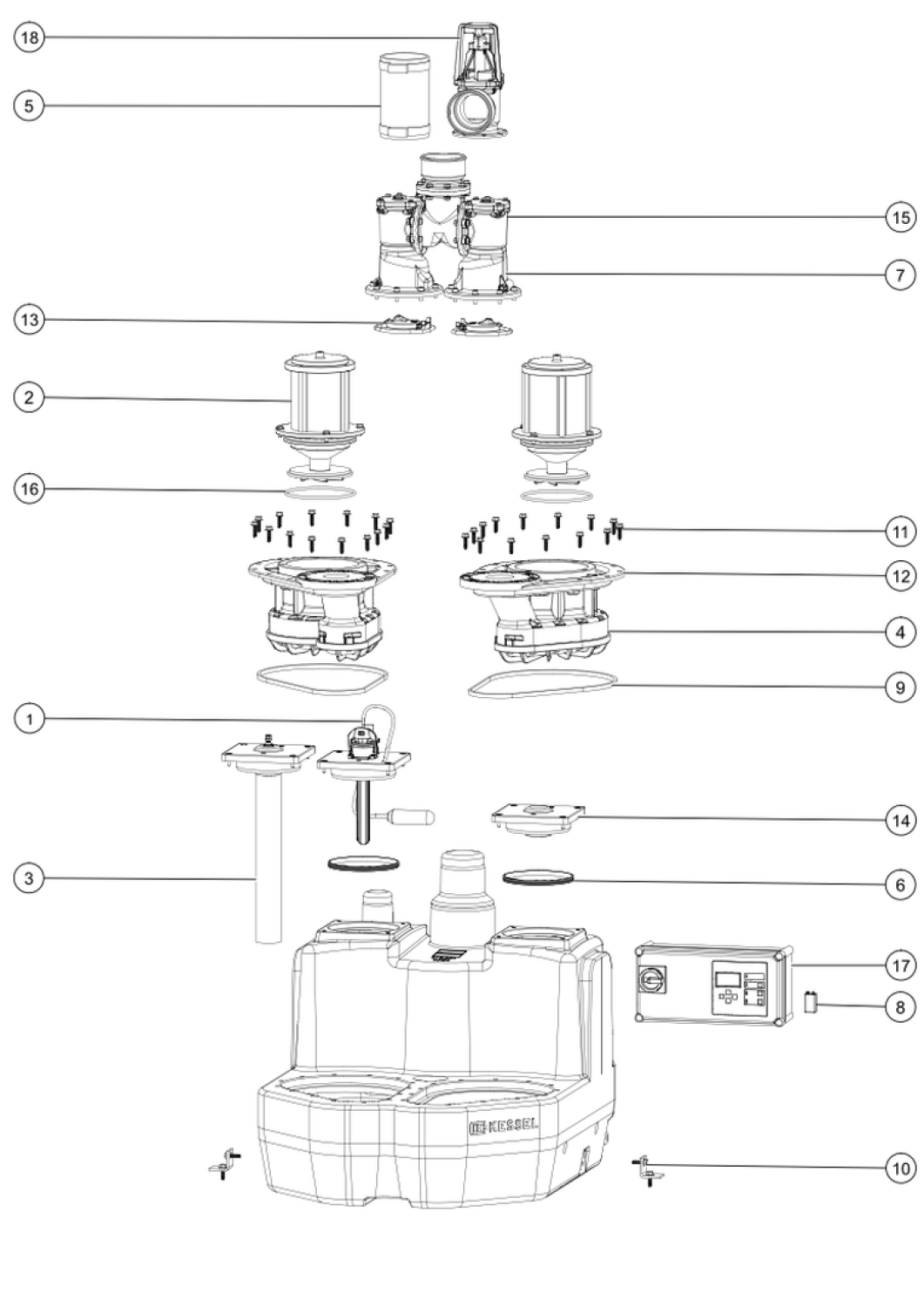 Die Hebeanlage für fäkalienhaltiges und fäkalienfreies Abwasser ist mit einer oder zwei überflutbaren Pumpen sowie einem Rückflussverhinderer ausgestattet. Der Sammelbehälter aus dauerhaft beständigem Kunststoff (PE) bietet universale Anschlussmöglichkeiten und hat eine verschraubte Reinigungsöffnung.