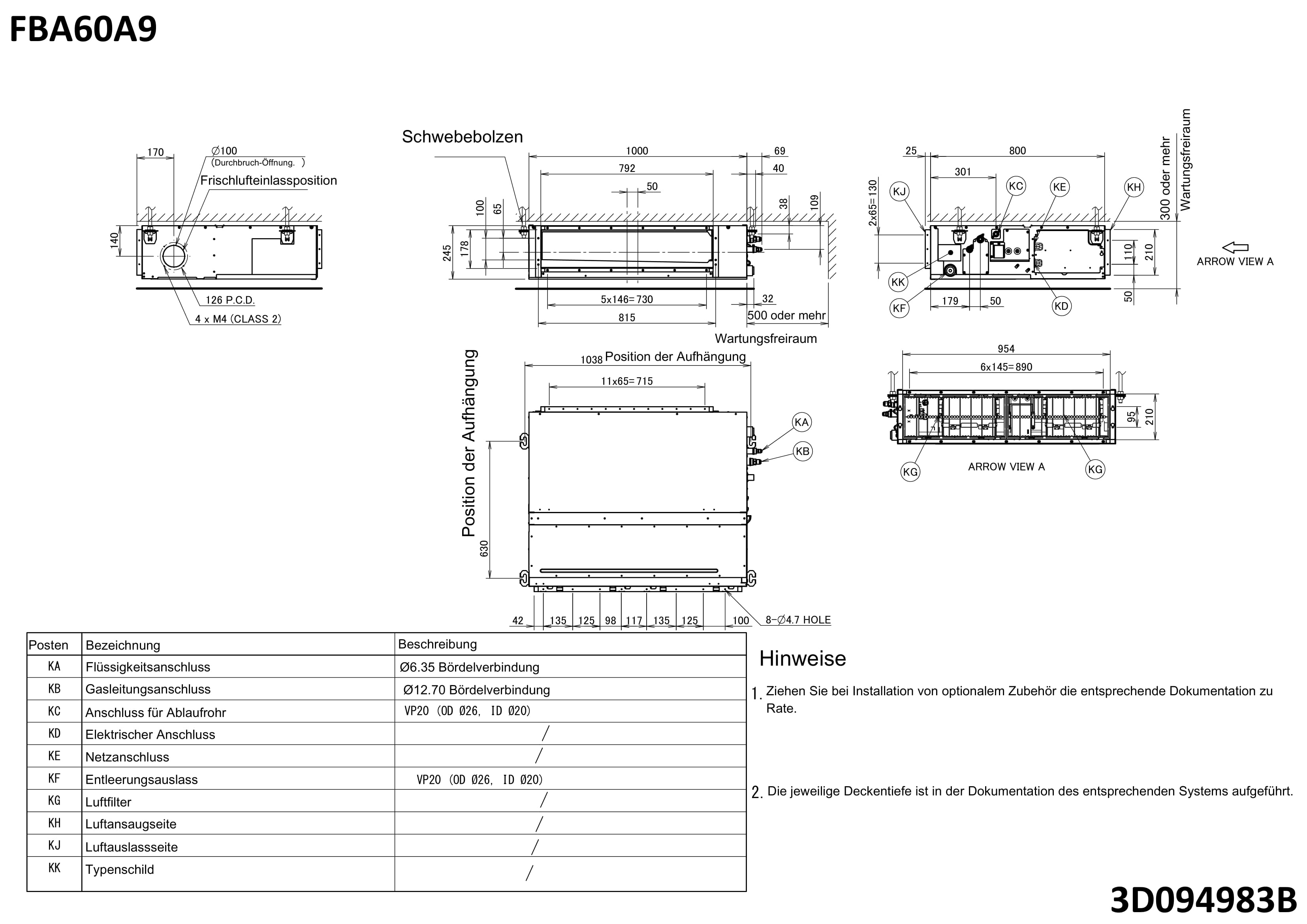Daikin DAIKIN Sky Air Kanalgerät FBA-A9 Typ 60 mittlere statische Pressung