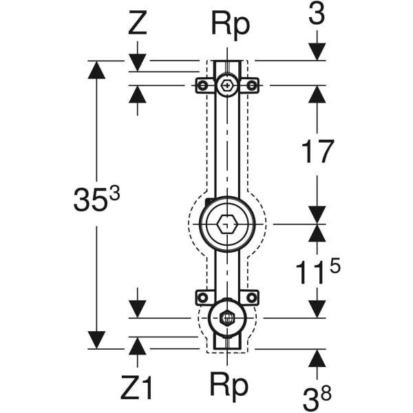 Geberit Wasserzählerstrecke mit UP-Kugelhahn und Anschluss-T-Stück Rp3/4"