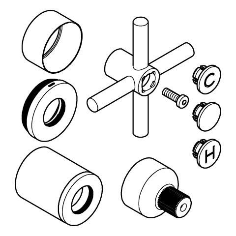 ein Set mit ''H'' und ''C'' Markierung, ein Set ohne Warm-Kalt-Markierung im Lieferumfang enthalten