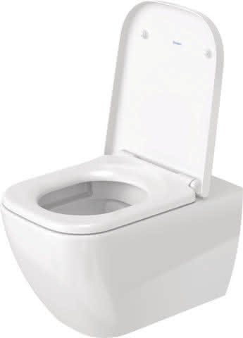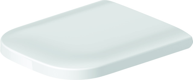 Duravit Happy D.2 WC-Sitz, Form: D-shaped, Weiß Hochglanz, Absenkautomatik: Ja, Sitzgarnitur abnehmbar, Material Scharnier: Edelstahl, Farbe Scharnier: Edelstahl, Überlappend