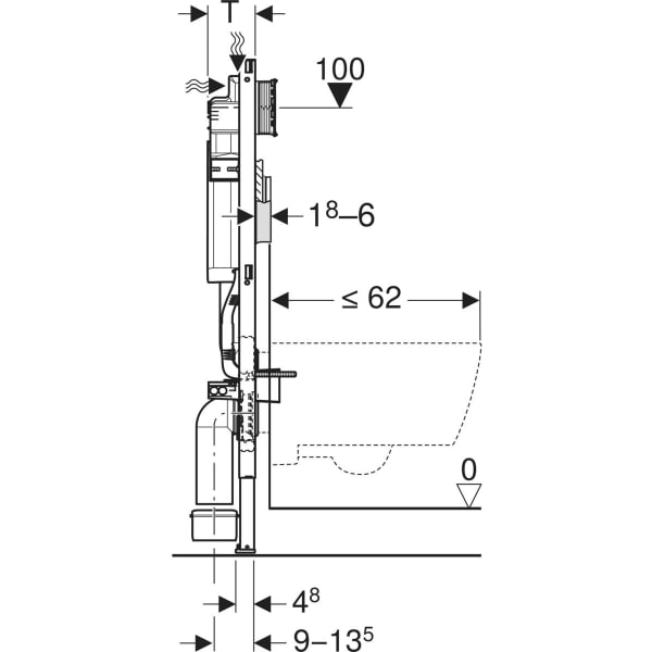 - Mit Leerrohr für Wasserzuleitung für Geberit AquaClean Dusch-WCs und für Anschlusskabel