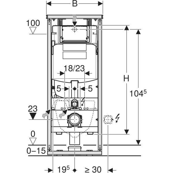 - Mit Leerrohr für Wasserzuleitung für Geberit AquaClean Dusch-WCs und für Anschlusskabel