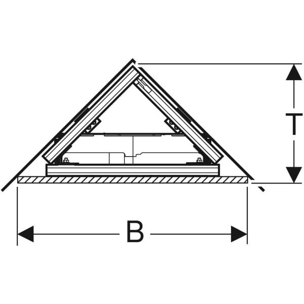 - Maße für die Grundfläche, Vorderkante Beplankung: B = 65 cm, T = 33 cm, Schenkellänge = 46 cm