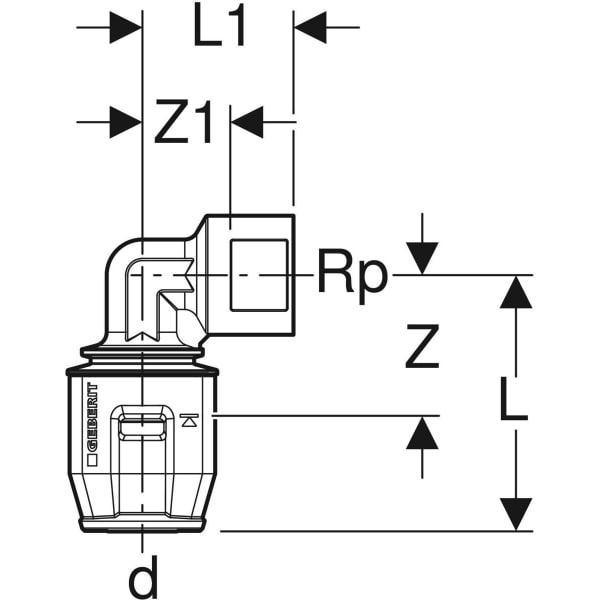 % 9,10 €* (18.02% gespart)Produktinformationen "Geberit PushFit Übergangswinkel 90Gr mit IG Ms d16-Rp1/2"