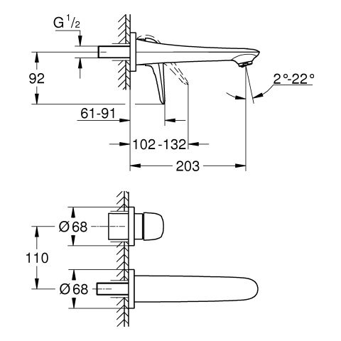 % 324,87 €* (44.42% gespart)Produktinformationen "GROHE 2-Loch-WT-Wandbatterie Eurostyle 29097_3 FMS Hebel geschlossen chrom"