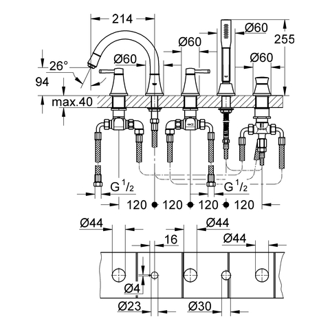 GROHE 5-Loch-Wannen-Kombination Grandera 19919 chrom