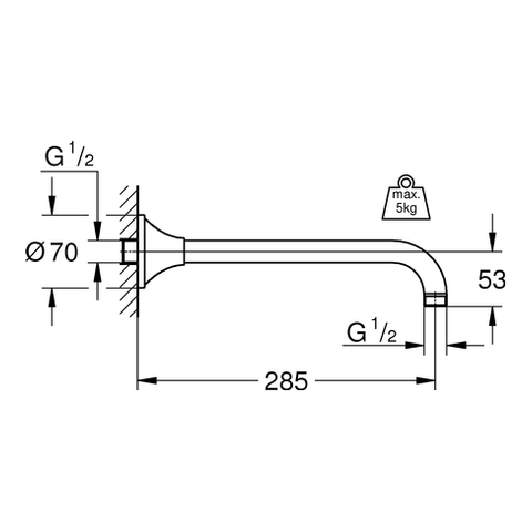 GROHE Brausearm Rainshower Grandera 27986 Ausladung 286 mm chrom
