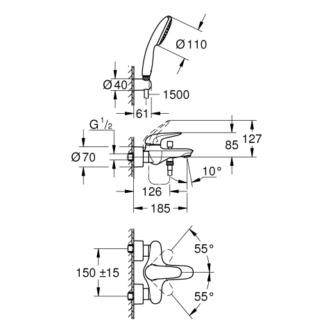 % 288,75 €* (44.42% gespart)Produktinformationen "GROHE EH-Wannenbatt. Eurostyle 25286_3 mit Wandhalterset Hebel geschl. chrom"