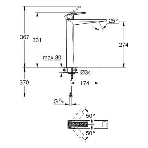 | Vorsprung Auslauf: | 180 mm |