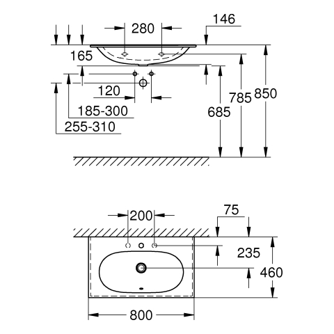GROHE Möbelwaschtisch Essence Keramik 39567 800x460 mm PureGuard alpinweiß