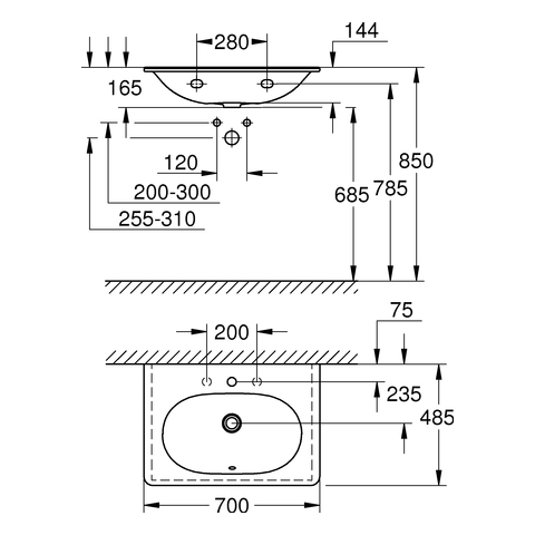 % 369,20 €* (48.69% gespart)Produktinformationen "GROHE Waschtisch Essence Keramik 39564 700x485 mm PureGuard alpinweiß"