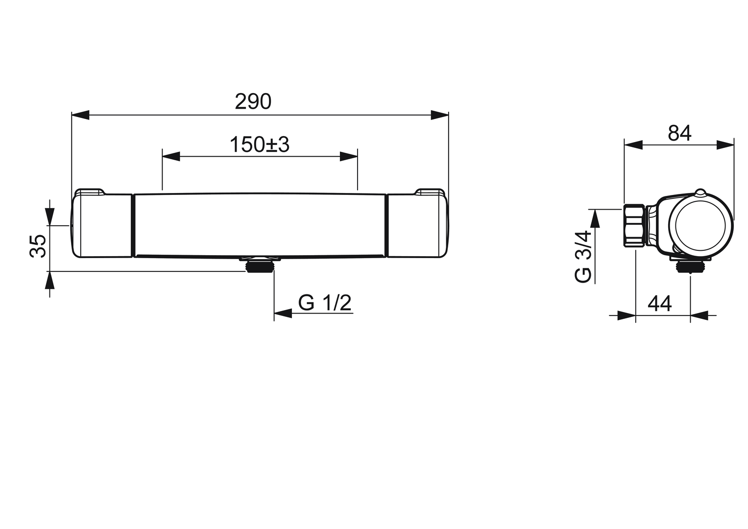 • Mechanische Teile: Oberteil mit keramischen Dichtscheiben zur Wassermengeneinstellung für einen Abgang, Thermostatkartusche zur Temperaturreglung, Rückflussverhinderer, Schmutzfilter