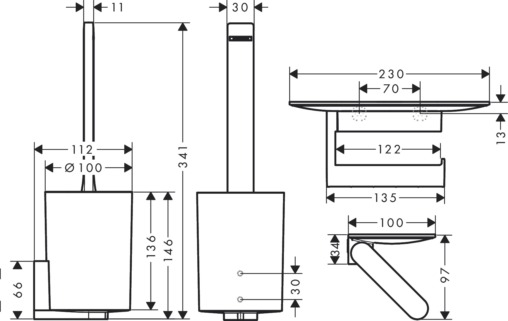 % 91,15 €* (38.44% gespart)Produktinformationen "Hansgrohe Toilettenset WallStoris mattschwarz"