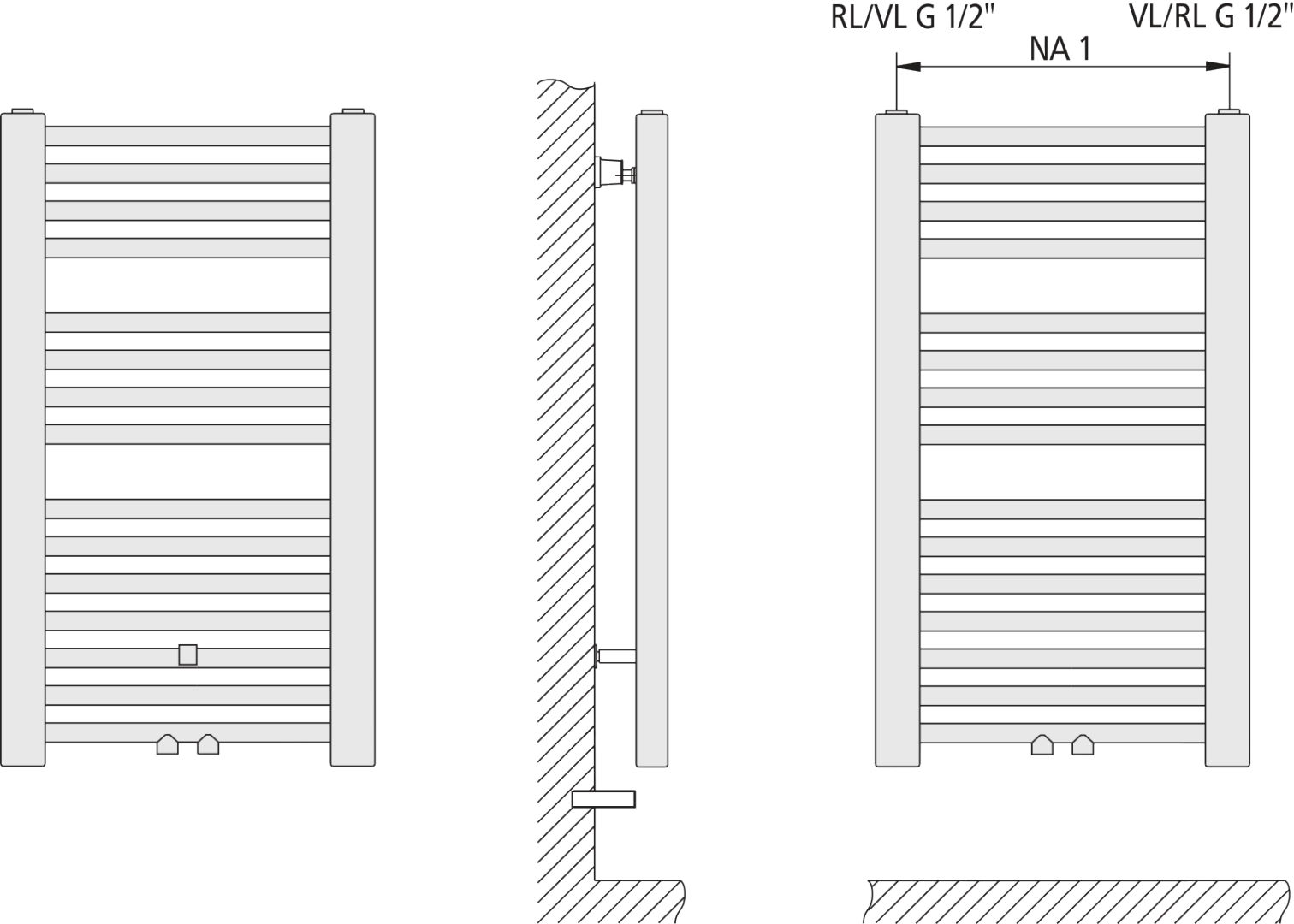 Kompaktheizkörper für Warmwasser-BetriebBefestigungs-Set beigepackt, entspricht den Anforderungsklassen I und II der Richtlinie VDI 6036 Anforderungsklasse III auf Anfrage möglich Bauseits ist der Wandbaustoff auf ausreichende Tragfähigkeit zu prüfen Alle sichtbaren Befestigungsteile in Heizkörperfarbe