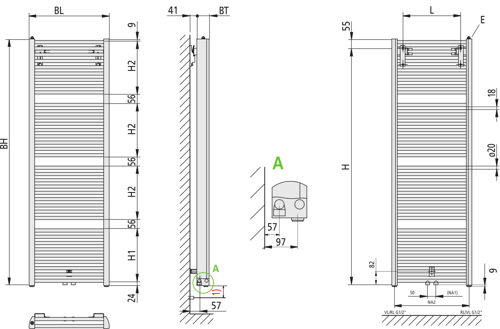 Kompaktheizkörper für Warmwasser-BetriebBefestigungs-Set beigepackt, entspricht den Anforderungsklassen I und II der Richtlinie VDI 6036 Anforderungsklasse III auf Anfrage möglichBauseits ist der Wandbaustoff auf ausreichende Tragfähigkeit zu prüfen Alle sichtbaren Befestigungsteile in Heizkörperfarbe