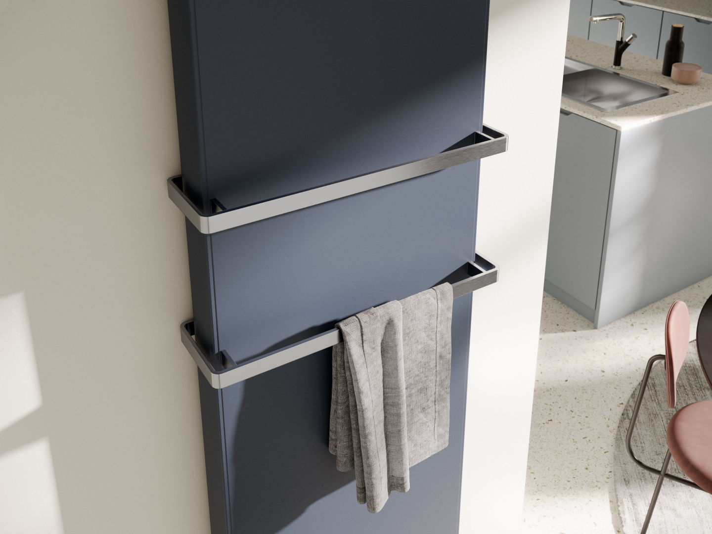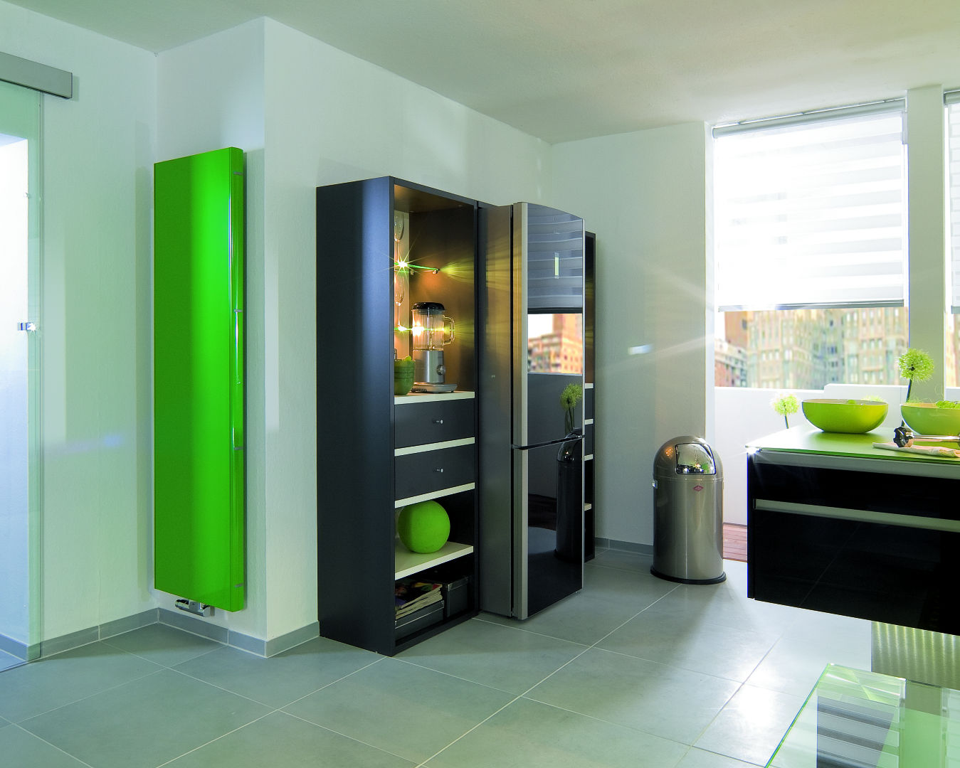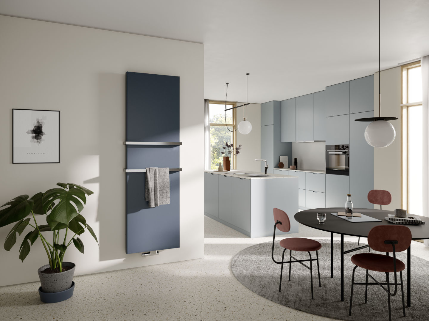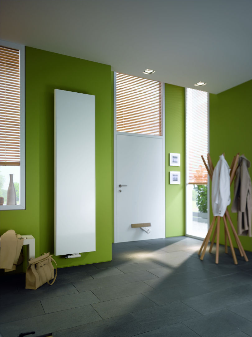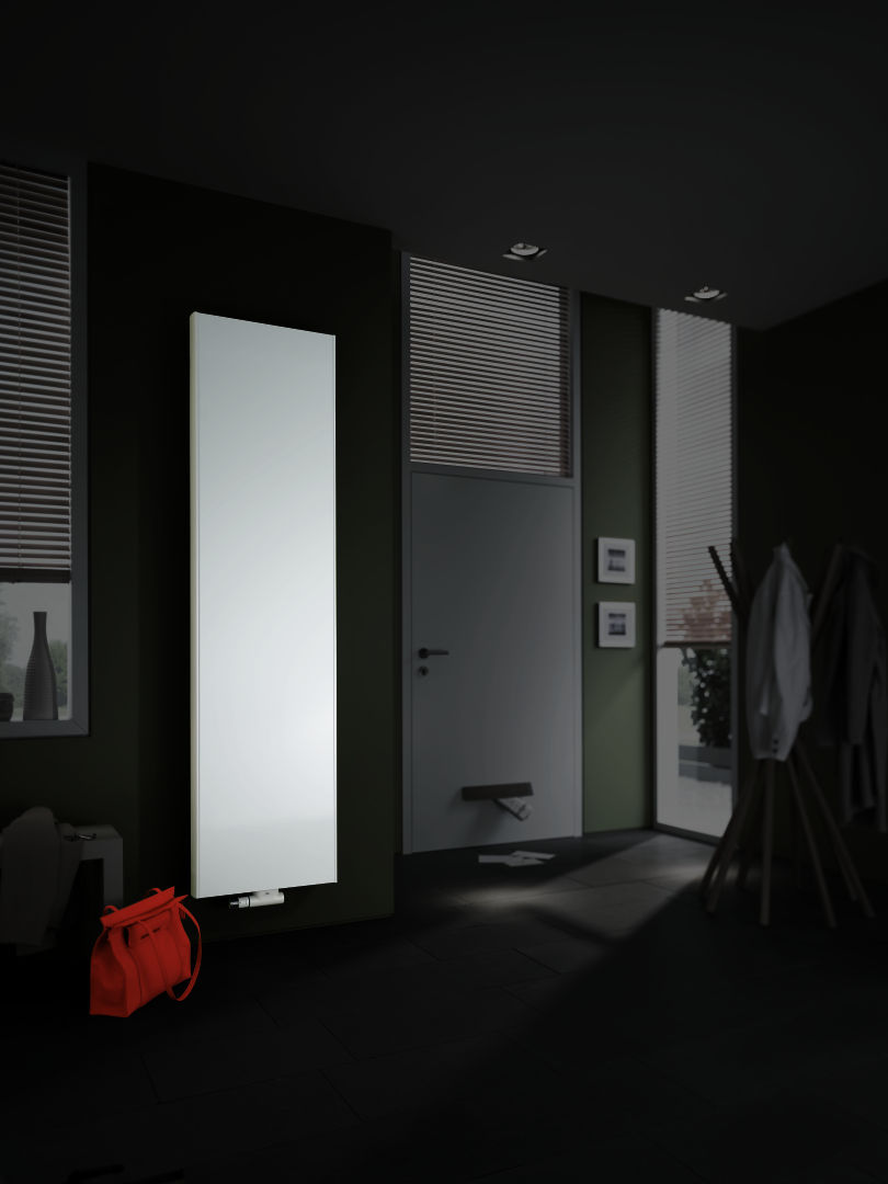 Verteo Heizkörper bringen Wärmekomfort dorthin, wo eigentlich kein Platz dafür ist. Mit ihrer vertikalen Ausrichtung werden sie zur platzsparenden Lösung für harmonische Raumintegration. Perfekt für Zimmer mit großer Raumhöhe, ideal für kleinere Räume, die wenig Möglichkeiten lassen für die Anbringung eines Heizkörpers.