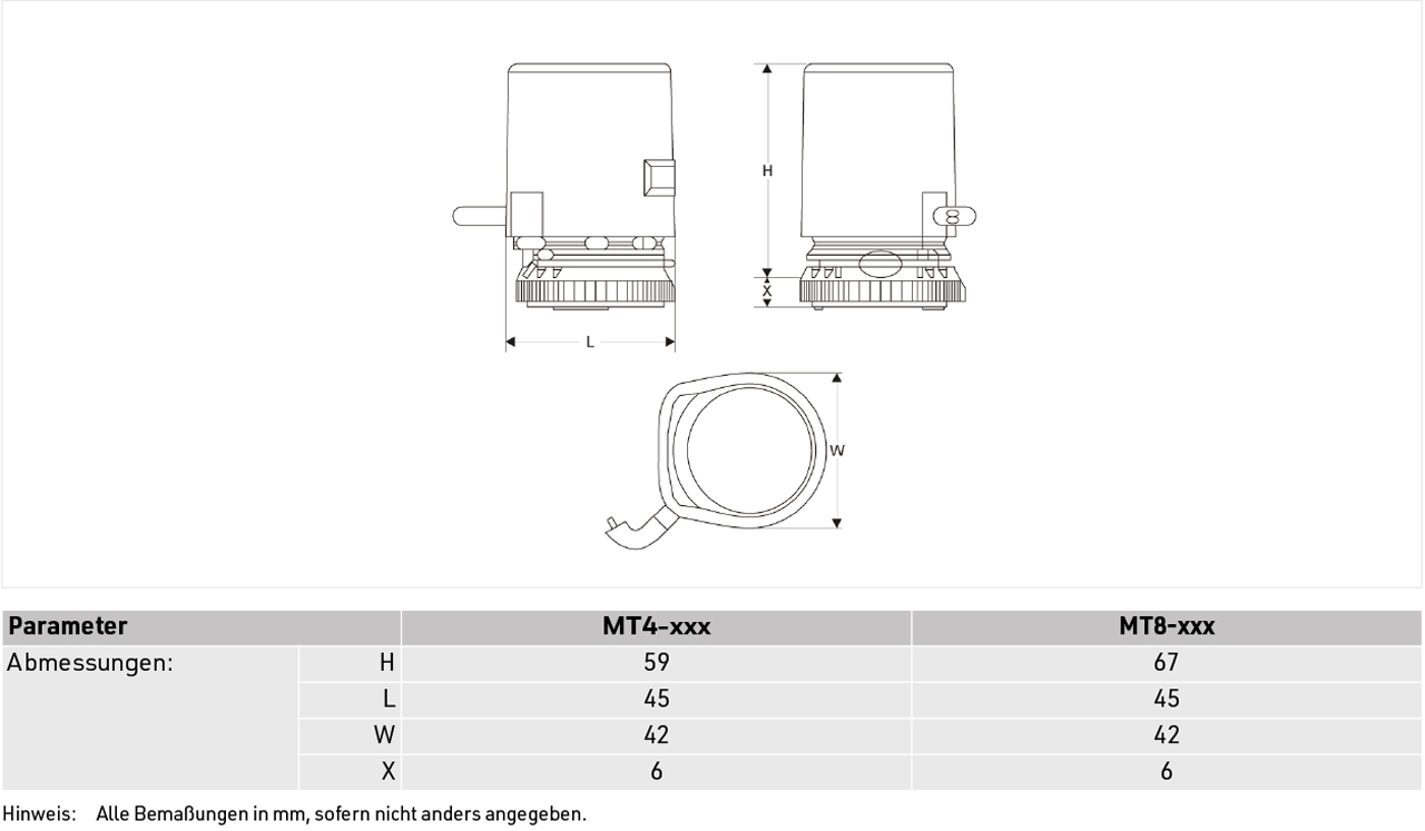 Die Smart-T Antriebe werden in Raum- und Zonenanwendungen für die zeitgesteuerte Zweipunkt- und pulsweitenmodulierte (PWM) Regelung von Heiz- und Kühlsystemen, wie Ventilatorkonvektorregler, Radiatoren, Fußbodenheizungen und Konvektoren eingesetzt. Passend für Standard M30 x 1,5 Heiz-/Kühlventile, Thermostatventile und Ventileinsätze für Verteiler und Kompaktradiatoren.