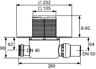 - mit seitlichem Zulauf DN 40 inklusive Verschlussstopfen