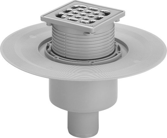 Aufsatz 100x100 mm dreh- und höhenverstellbar, Rahmen Kunststoff, Rost Edelstahl 1.4301, Stopfen, Abdichtungsflansch, Geruchverschluss herausnehmbar