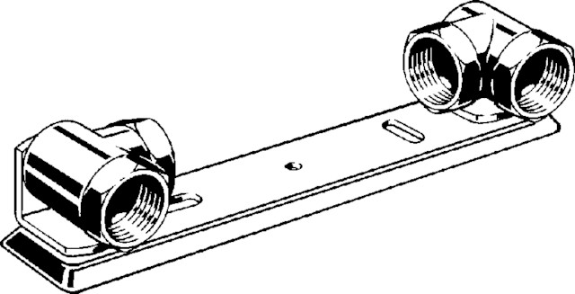 Langlöcher für Wandmontage, Anschlusswinkel Temperguss verzinkt, Grundplatte und Drehwinkel verzinkt