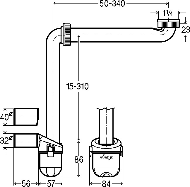 % 61,76 €* (47.81% gespart)Produktinformationen "Viega Geruchverschluss 5634.15 in G1 1/4 x DN32/40 Kunststoff weiß"