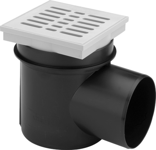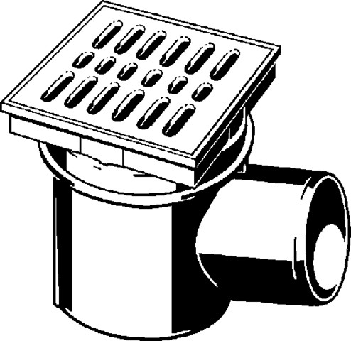 Ablaufrohr seitlich, Aufsatz 150x150 mm drehbar, Rost Kunststoff grau, Geruchverschluss herausnehmbar, Siebeinsatz