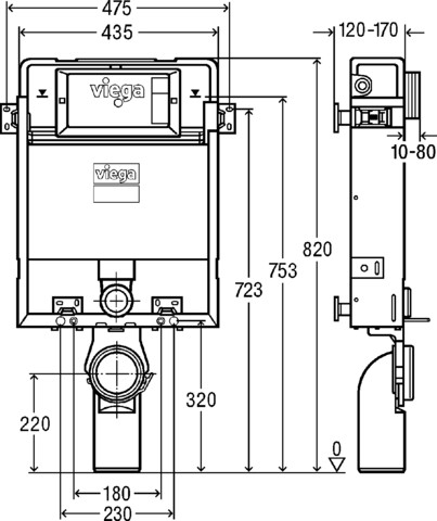 % 464,10 €* (40.12% gespart)Produktinformationen "Viega WC Block 3L Prevista Pure 8516 in 820 mm Stahl verzinkt"