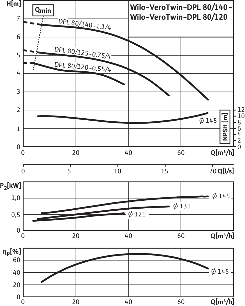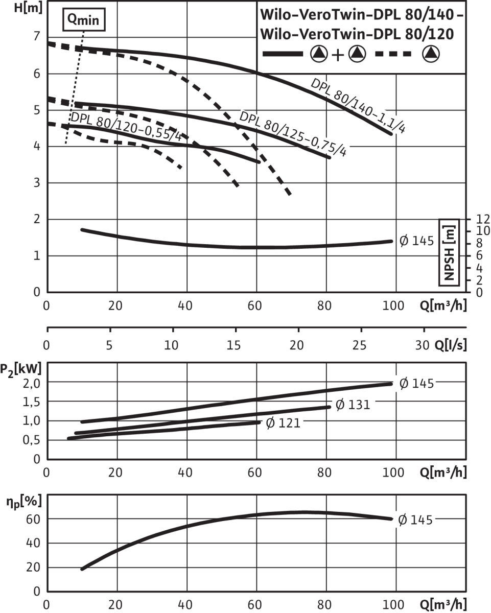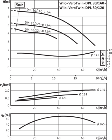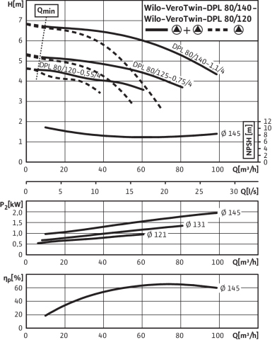 Wilo Trockenläufer-Standard-Doppelpumpe DPL 80/120-0,55/4,DN80,3x400V,0.55kW